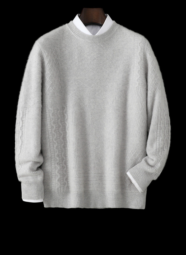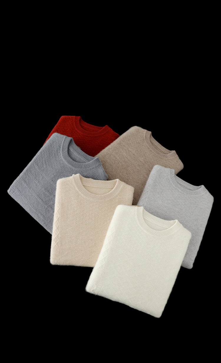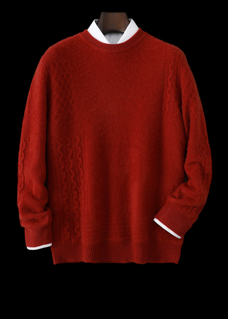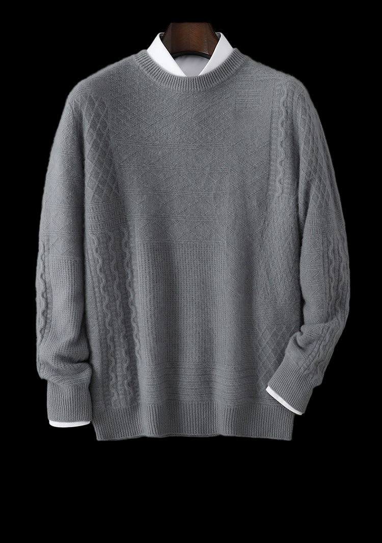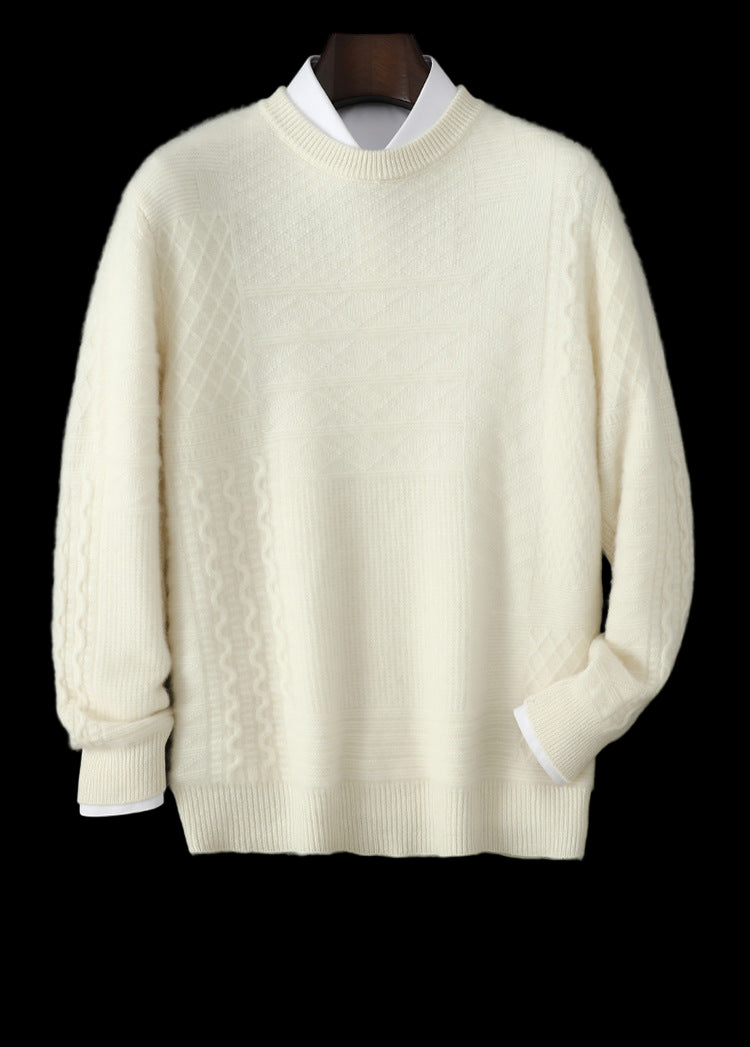 Elevate your essentials with this timeless jumper, crafted from 100% genuine wool for superior softness, warmth, and natural breathability. This sweater offers a light luxury feel with a substantial drape. Its design features subtle yet intricate textured patterns (cable knit, diamonds) along the body and sleeves, adding depth and artisanal character to a classic crew-neck silhouette. Available in a sophisticated palette of core and accent colors.