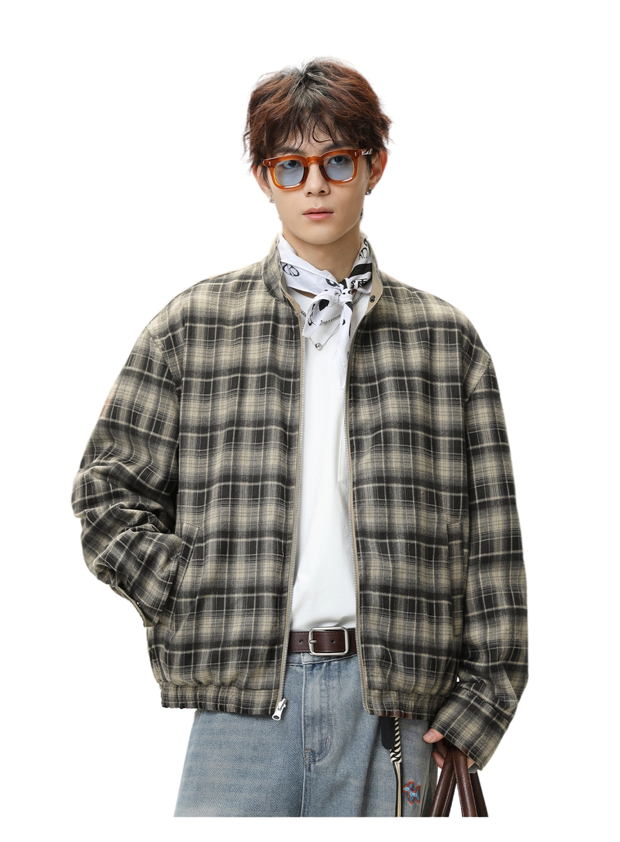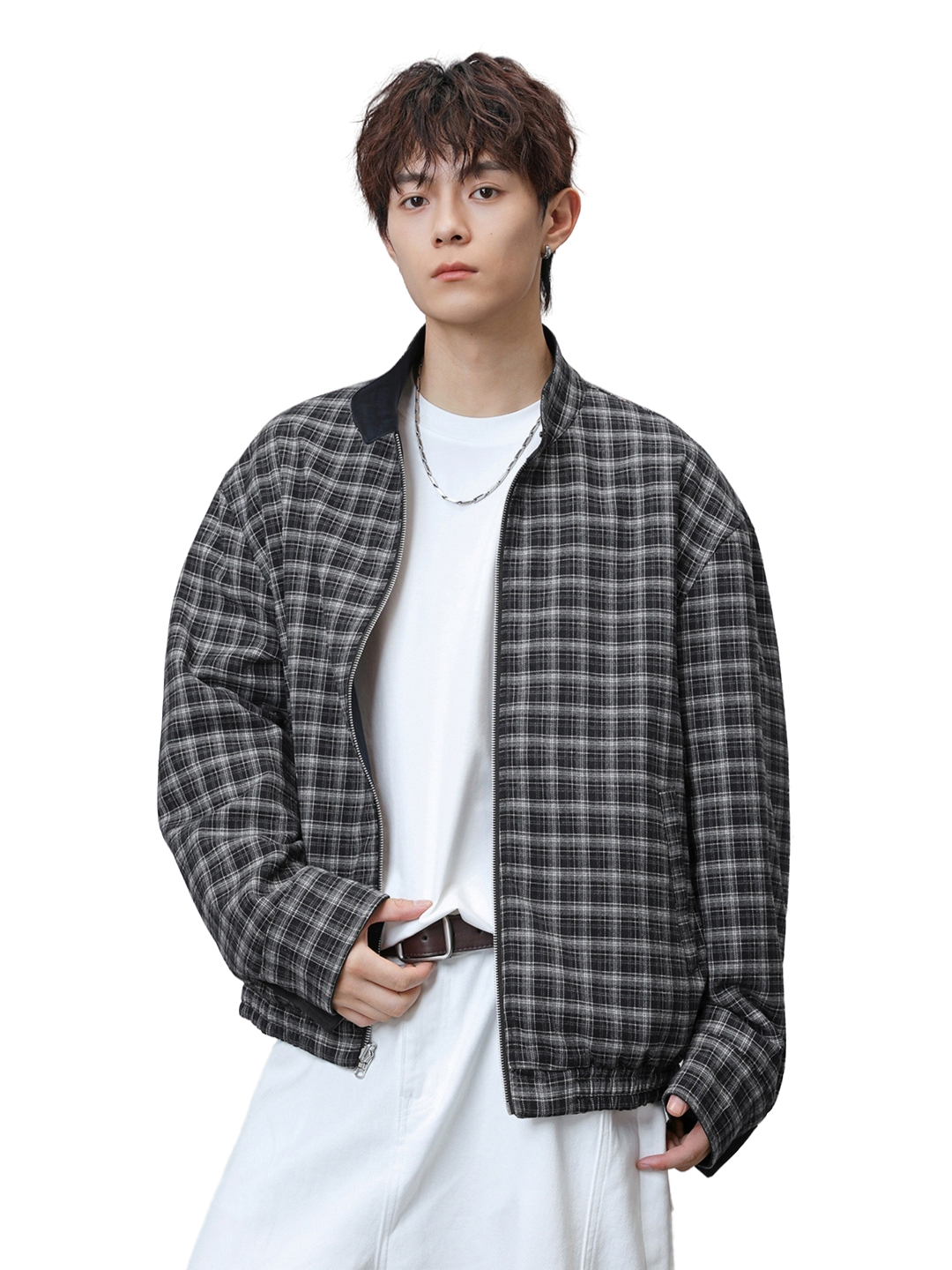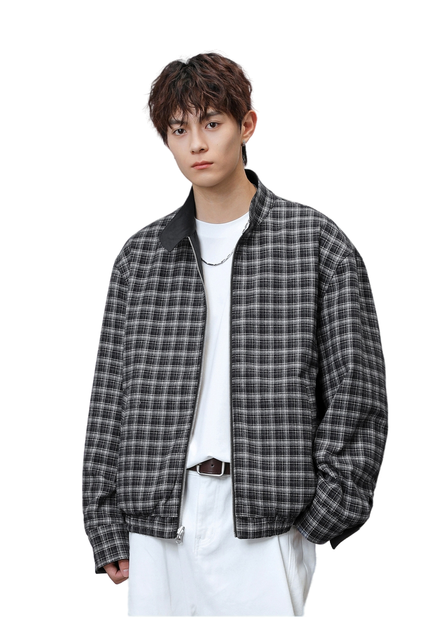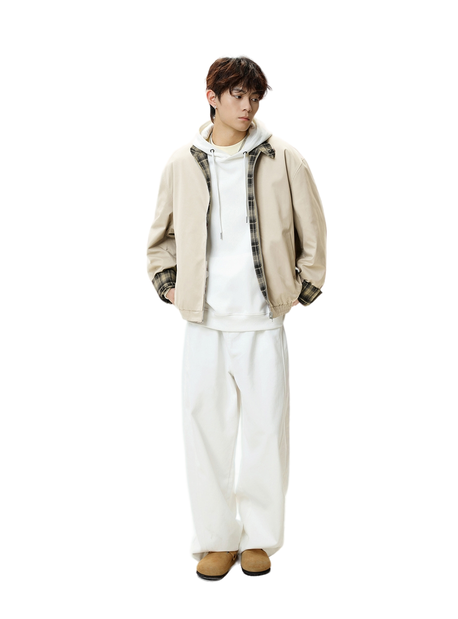 This versatile jacket is the ultimate layering piece for the unpredictable mid-season weather. Crafted entirely from 100% durable polyester fiber, it serves as a lightweight yet highly effective windbreaker. The true strength of this piece lies in its full reversibility, instantly transforming your look from a clean, solid exterior (Navy or Beige) to a subtle, patterned check lining.